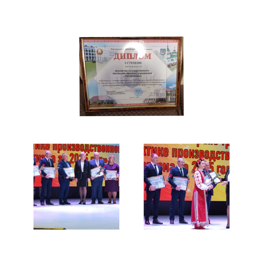 Признать победителем смотра-конкурса на лучшую организацию по охране труда и профилактике производственного травматизма среди предприятий производственной сферы деятельности — коллектив государственного лесохозяйственного учреждения «Тетеринское» с присуждением первого места, вручением диплома Круглянского районного исполнительного комитета в рамке, цветов и денежного вознаграждения в размере 5 (пяти) базовых величин, с занесением на районную Доску почета.